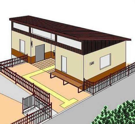当初、市民投票で選ばれた公衆トイレのデザイン案。男性用が青色、女性用が赤色だった(明石市提供)