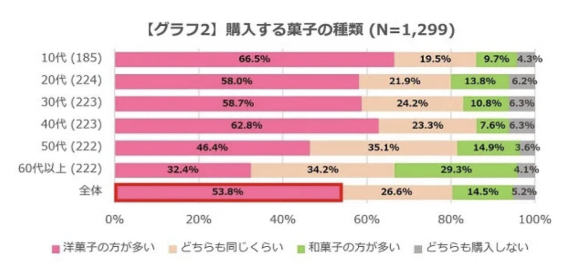 【悲報】和菓子業界「お願い!若者はもっと和菓子食べて!」 2021/10/13 哲学ニュースnwk 1: 名無し募集中。。。 2021/10/11(月) 15:01:27.45 0 和菓子より洋菓子の方が多く購入する 10代 66.5% 20代 58.0% 30代 58.7% 40代 62.8% 50代 46.4% 60代 32.4% 続きを読む Source: 哲学ニュースnwk