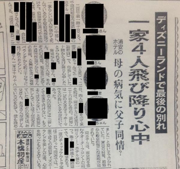 近所のディズニーランドを楽しんだ後一家で心中を図ったと見られている。