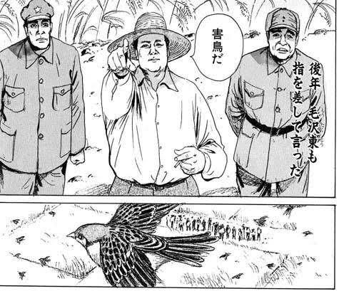 1958年2月から四害(伝染病を媒介するハエ・蚊・ネズミ・農作物を食い荒らすスズメ)の大量捕獲作戦が展開された。中国語では「除四害運動」と呼ばれたが、スズメを大量に駆除したことから、「打麻雀運動」、「消滅麻雀運動」とも呼ばれる。しかしスズメの駆除はかえってハエ・蚊・イナゴ(蝗害)・ウンカなどの害虫の大量発生を招き、農業生産は大打撃を被った。