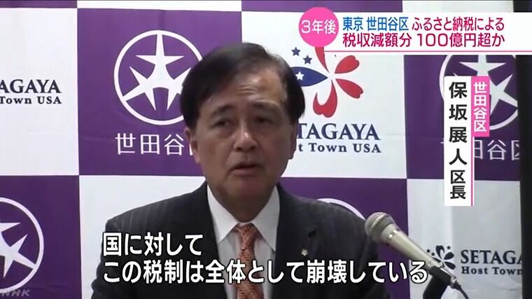 保坂展人区長は「疲弊する地方に大都市がいくぶんか支援することはいいと思うが、都市部が返礼品を使ってこの制度を乱用する事例も起きている。1000万でも1500万でも寄付できる人がいて、上限もない。国には制度を見直すべきと言いたい」と話しています。