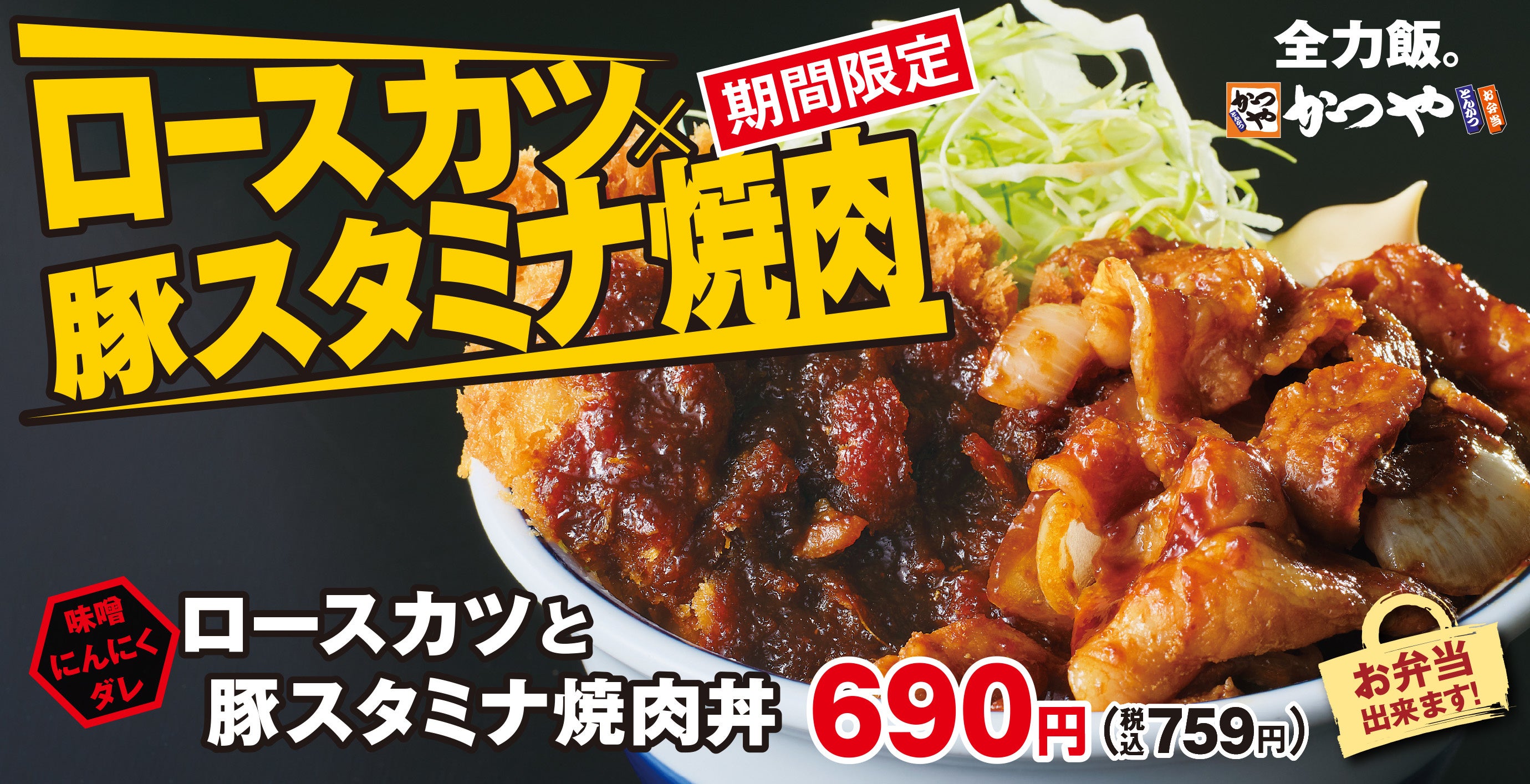 かつやの期間限定メニューでお馴染みの「合い盛りシリーズ」が2022年も始動!60gのロースカツと味噌にんにくダレで仕立てた豚焼肉が合い盛りの「ロースカツと豚スタミナ焼肉丼」は、味変のマヨネーズや厚みのある玉ねぎや千切りキャベツの食感が相まって絶妙な一品に仕上げました。