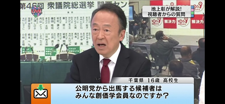 池上彰「あ、なるほどねーこれはーあの、創価学会員の人が多いんですけども、中には創価ではない人が入る場合もあります。ええ」