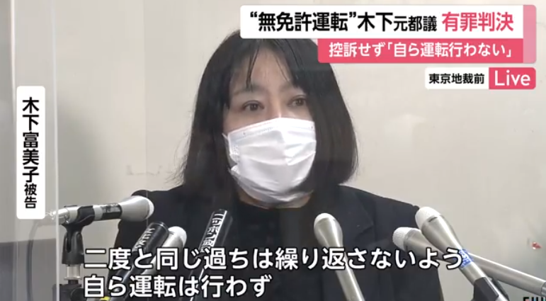 “無免許運転”木下元都議 有罪判決 控訴せず「自ら運転行わない」 #FNNプライムオンライン https://t.co/yiZWlIQHsy