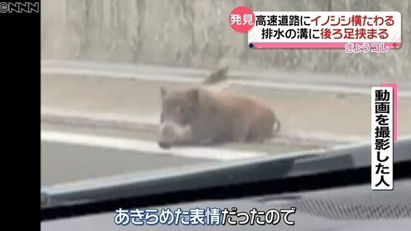 高速道路にイノシシ 排水溝に足挟まり… #日テレNEWS https://t.co/QJuzBO88LL