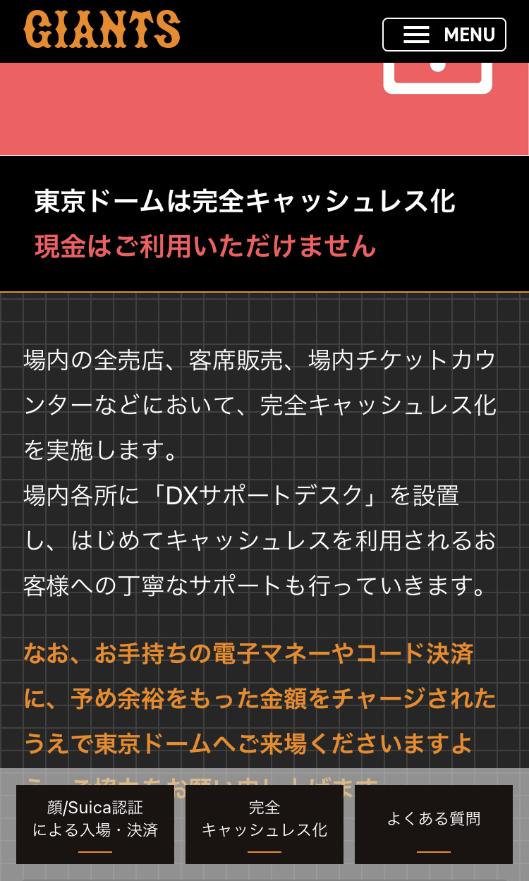 💸現金が使えなくなります3月2日(水)より、東京ドーム場内は