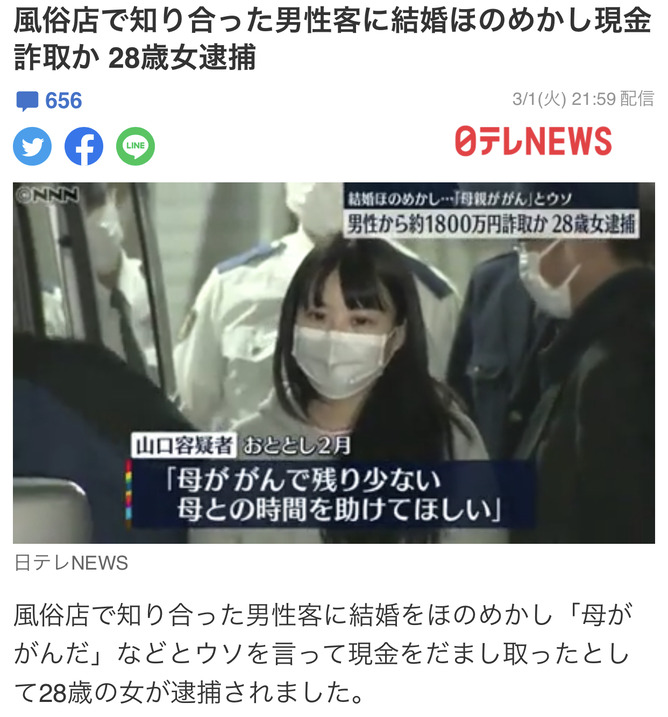 風俗店で知り合った男性客に結婚をほのめかし「母ががんだ」などとウソを言って現金をだまし取ったとして28歳の女が逮捕されました。