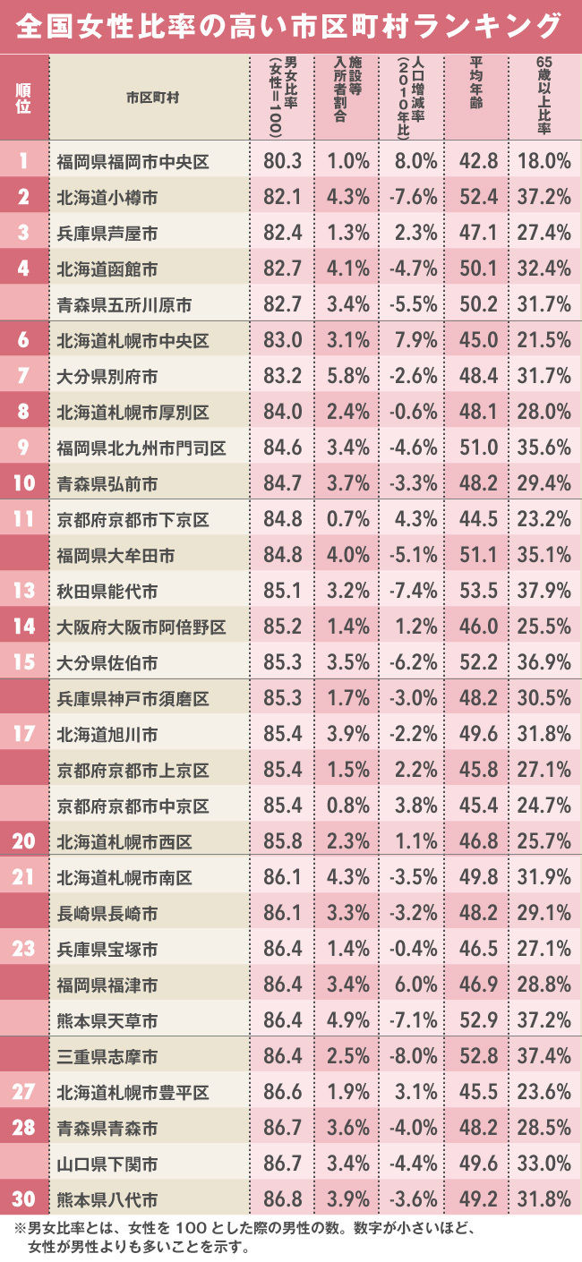 【画像】モテたい男はここに住め❗全国1741市区町村、女性が多い街ランキングをご覧ください