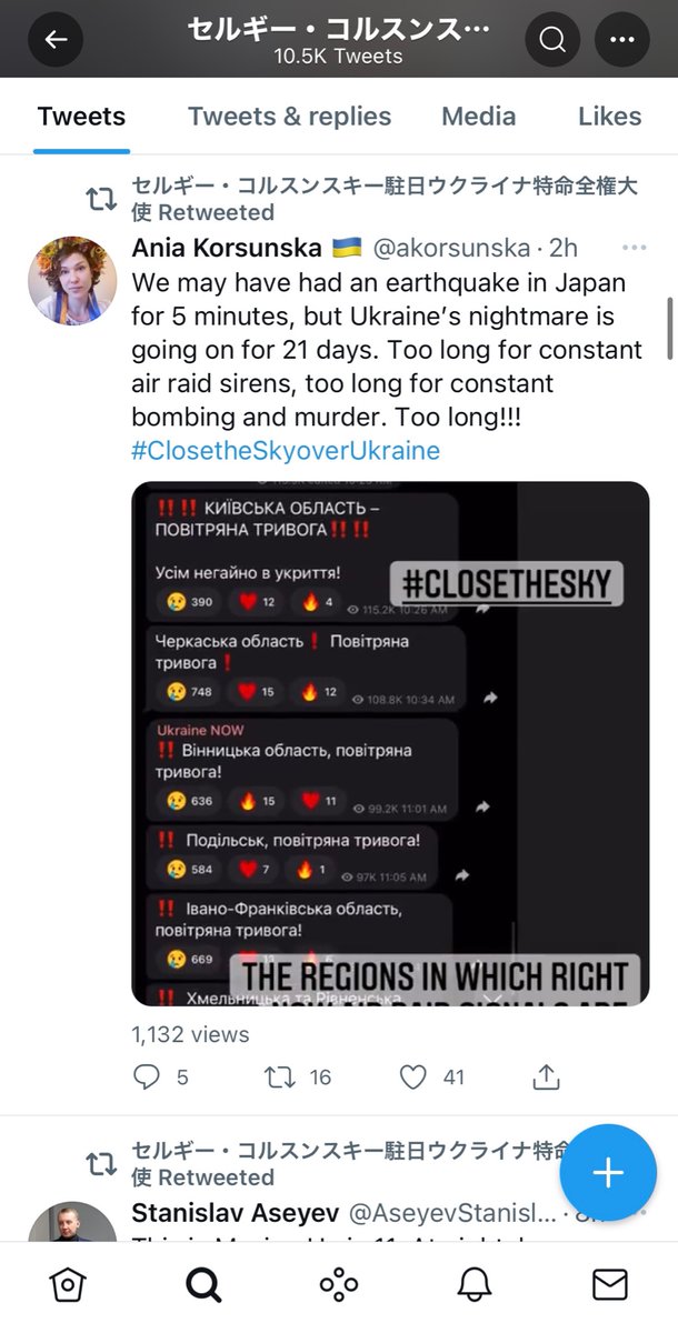 ウクライナ大使リツイート「日本の地震は5分。ウクライナは21日。我々がどんなに苦いかわかりますか?」 2022/3/18 哲学ニュースnwk 1: プロストラチン(東京都) [JP] 2022/03/17(木) 22:11:34.47 ID:v8eAOuYW0● BE:781534374-2BP(2000) 続きを読む Source: 哲学ニュースnwk