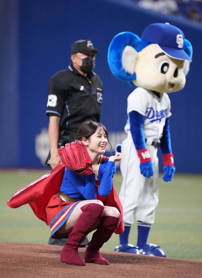 “スーパーガール”大暴投 桃月なしこが始球式