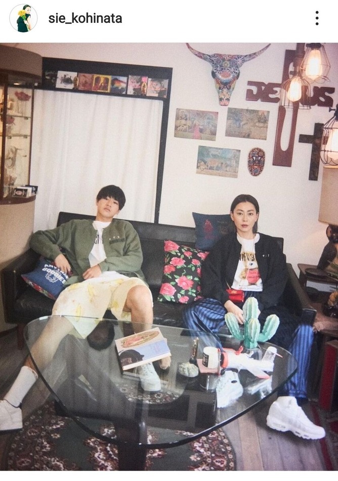 小日向は28日のツイッターで「Instagramにて去年から長男坊の心平と共に同じアイテムをシェアして着回す取り組みを『MomSon(マムサン)コーデ』と名付けて発信してます」と報告。