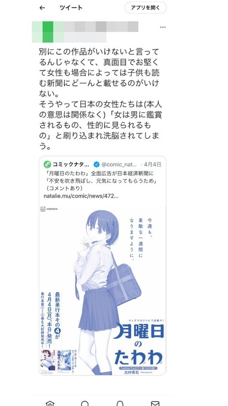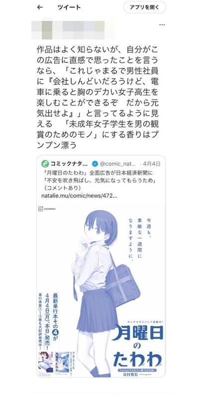 講談社さん、日本経済新聞の全面広告で癒やし系巨乳JK漫画「月曜日のたわわ」をPR