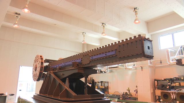 増田記者は、防衛技術の次世代装備「レールガン」の試作品を取材しました。重さは約8トン、砲身の長さは6mで、弾丸はダーツの矢のような形をしています。その発射の実験では、火薬を用いた従来砲よりも早い秒速2297メートル(約マッハ7)を記録しました。