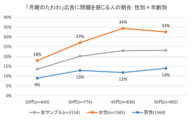 なお、「月曜日のたわわ」広告を問題視してるのは40代の女性が一番多いというデータ