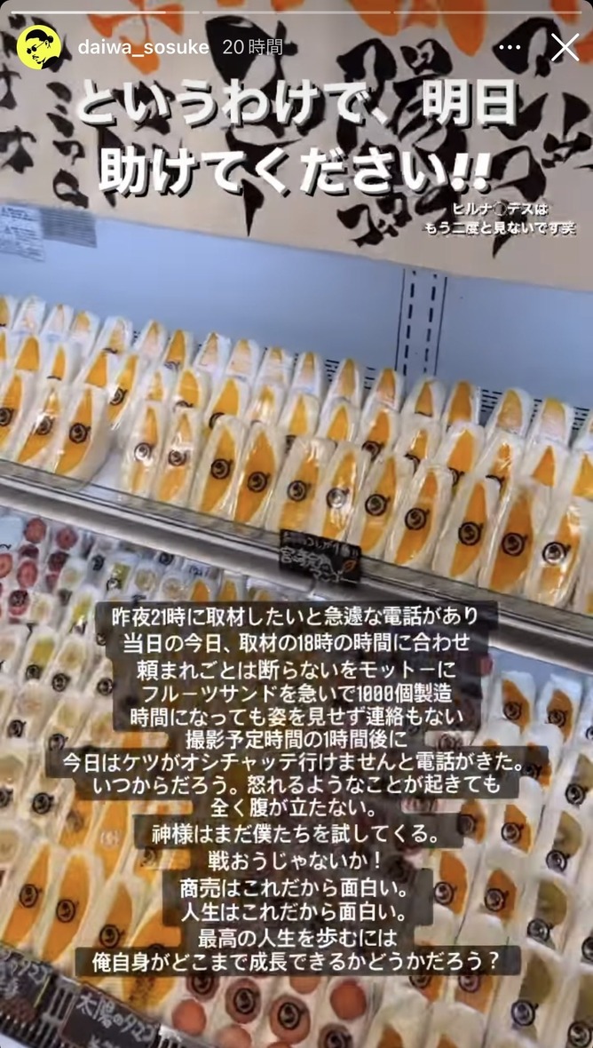 【画像】フルーツサンド屋さん、TV取材をドタキャンされ爆死
