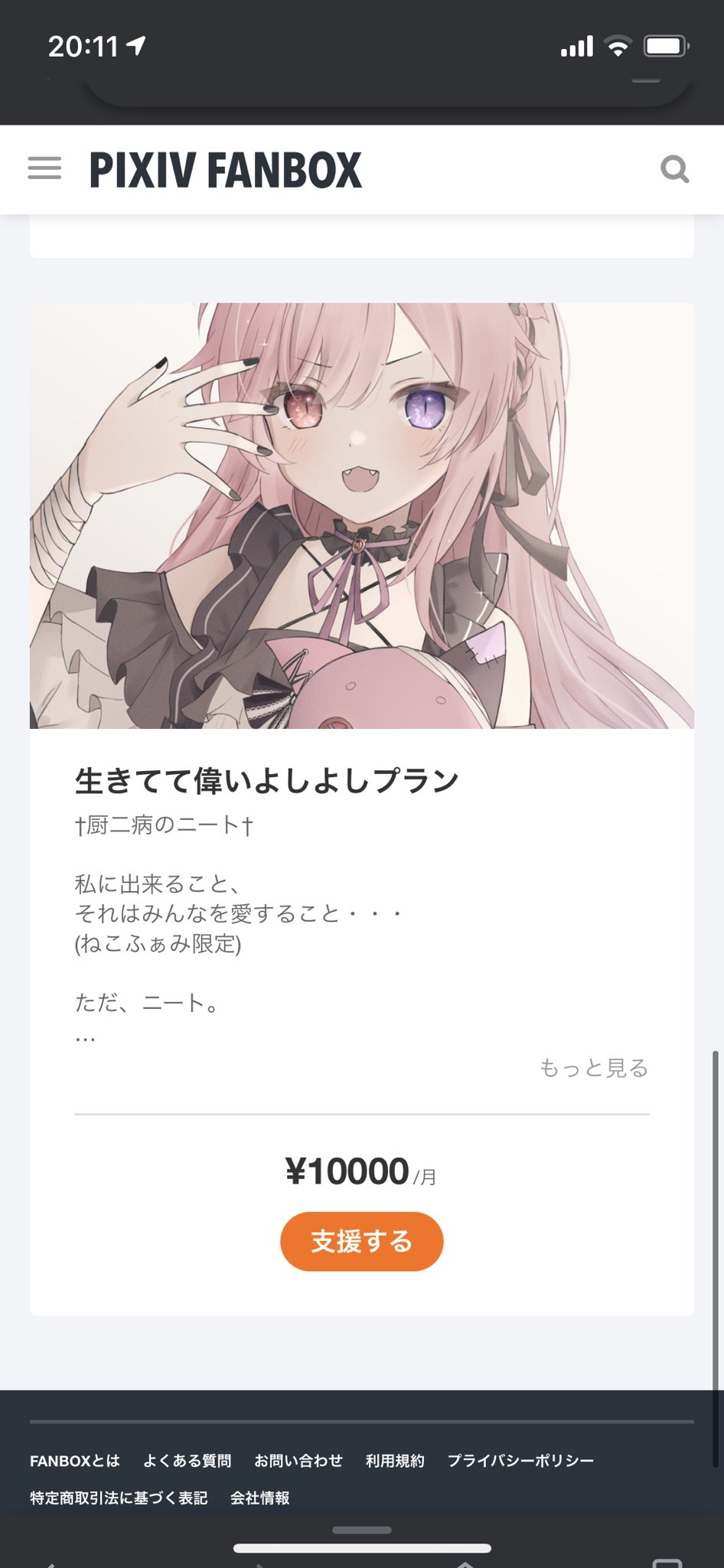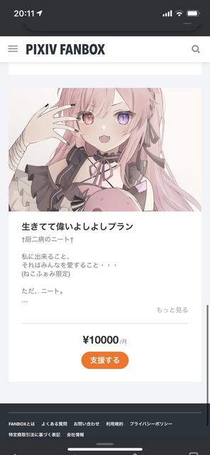 【画像】みけねこさん(元潤羽るしあ)のfanbox、「生きてて偉いよしよしプラン」月額10000円