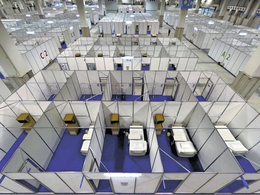 大阪・南港の大型展示場「インテックス大阪」に、無症状・軽症用800床と中等症用200床を整備。人の移動が活発になる年度替わりの感染拡大に備え、会場は5月末まで押さえた。