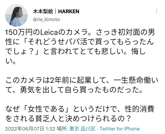 — 木本梨絵|HARKEN (@rie_kimoto) June 6, 2022