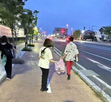 拾い集めたごみには、飲み物や食べ物の容器や袋などのほか、血の付いたティッシュなどもあった。途中で警察官が引き取りに来た分も含め、同6時ごろまで約20袋分を集めたという。