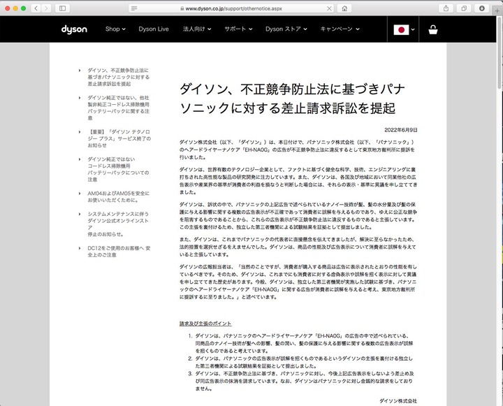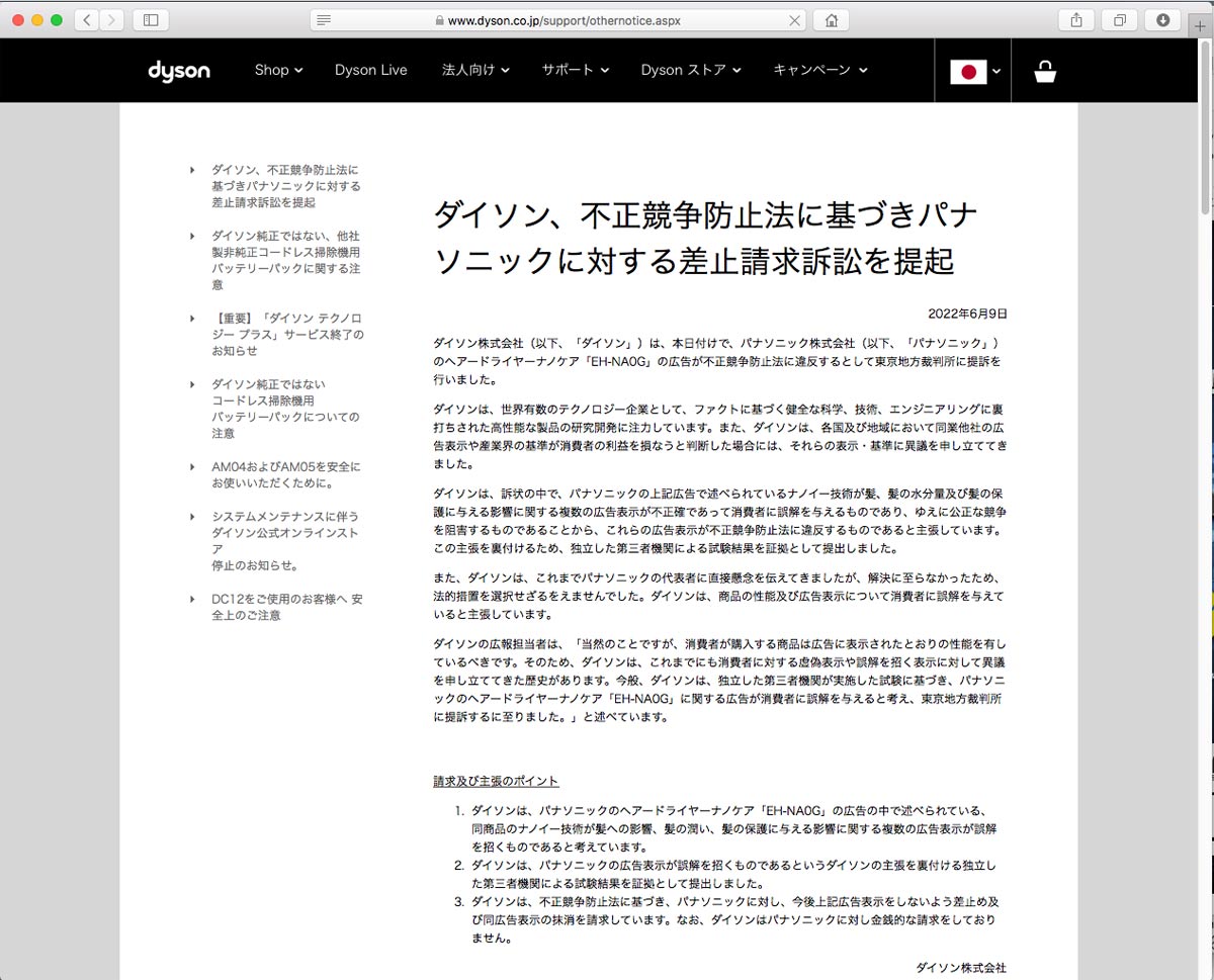 ダイソン、パナソニックを提訴 ドライヤー広告の差し止め求めるhttps://t.co/vhXxwSrXxa pic.twitter.com/y8QXMBBS9T