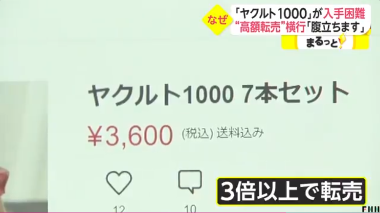 「ヤクルト1000」が入手困難 “高額転売”横行「腹立ちます」 #FNNプライムオンライン https://t.co/wMwb7VOQ4z