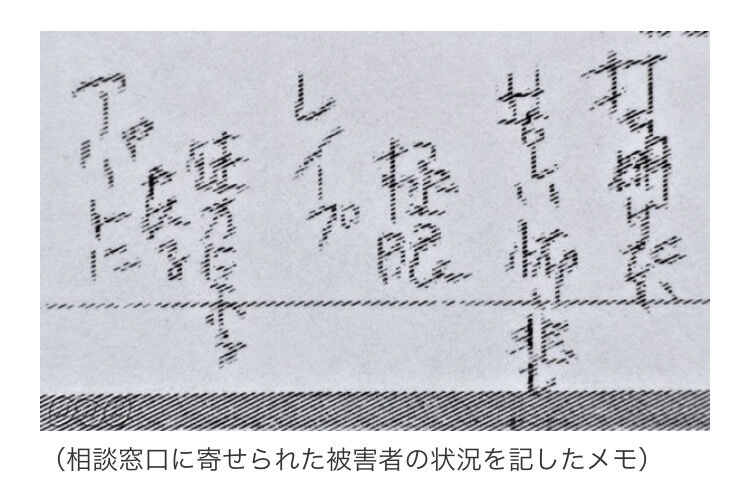 避難所のリーダーに、「(夫を亡くして)大変だね。タオルや食べ物をあげるから、夜◯◯に取りに来て」と言われ、取りに行くと、あからさまに性行為を強要されました。(震災で夫を亡くした女性)