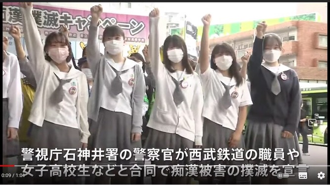 高校に通う女子高校生などと合同で、痴漢被害の撲滅を宣言しました。
