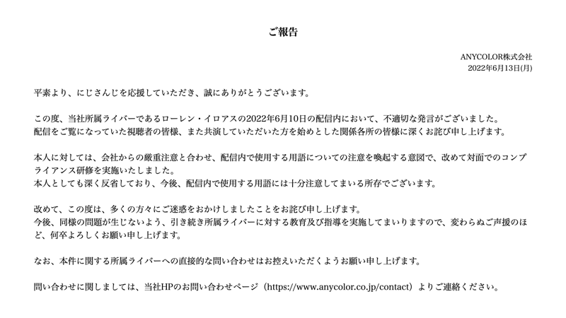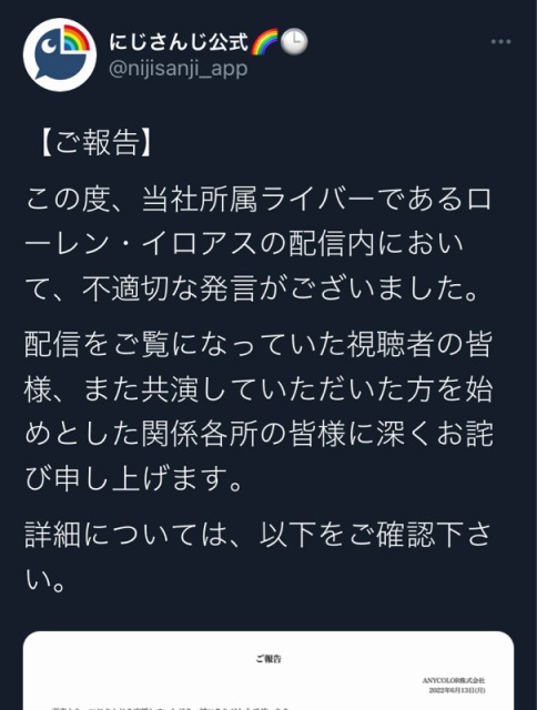 【悲報】にじさんじ「ローレン・イロアスにつきまして」