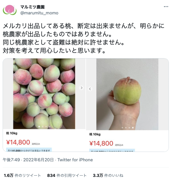 出品者の手がデカいデコパーツと派手な色のネイルで農家とは思えない