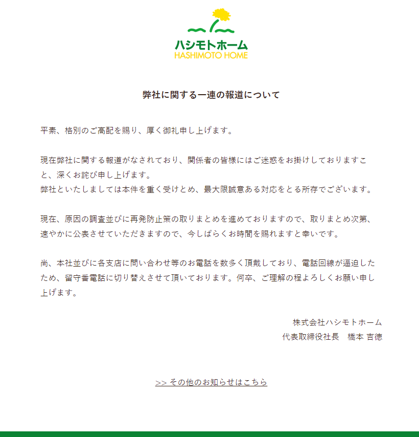 侮辱「賞状」騒動のハシモトホームがHPで謝罪https://t.co/fq4TkzQCSi