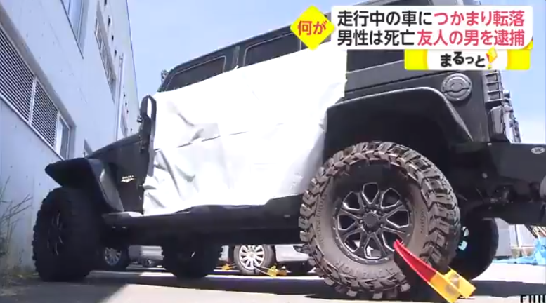 逮捕された男は近くに住む知人の男性が乗用車の左側面につかまっているのを知りながら、車を走行させて死亡させた疑い。車から転落した男性は、頭を強く打って搬送先の病院で死亡した。 pic.twitter.com/wvTw762XTz