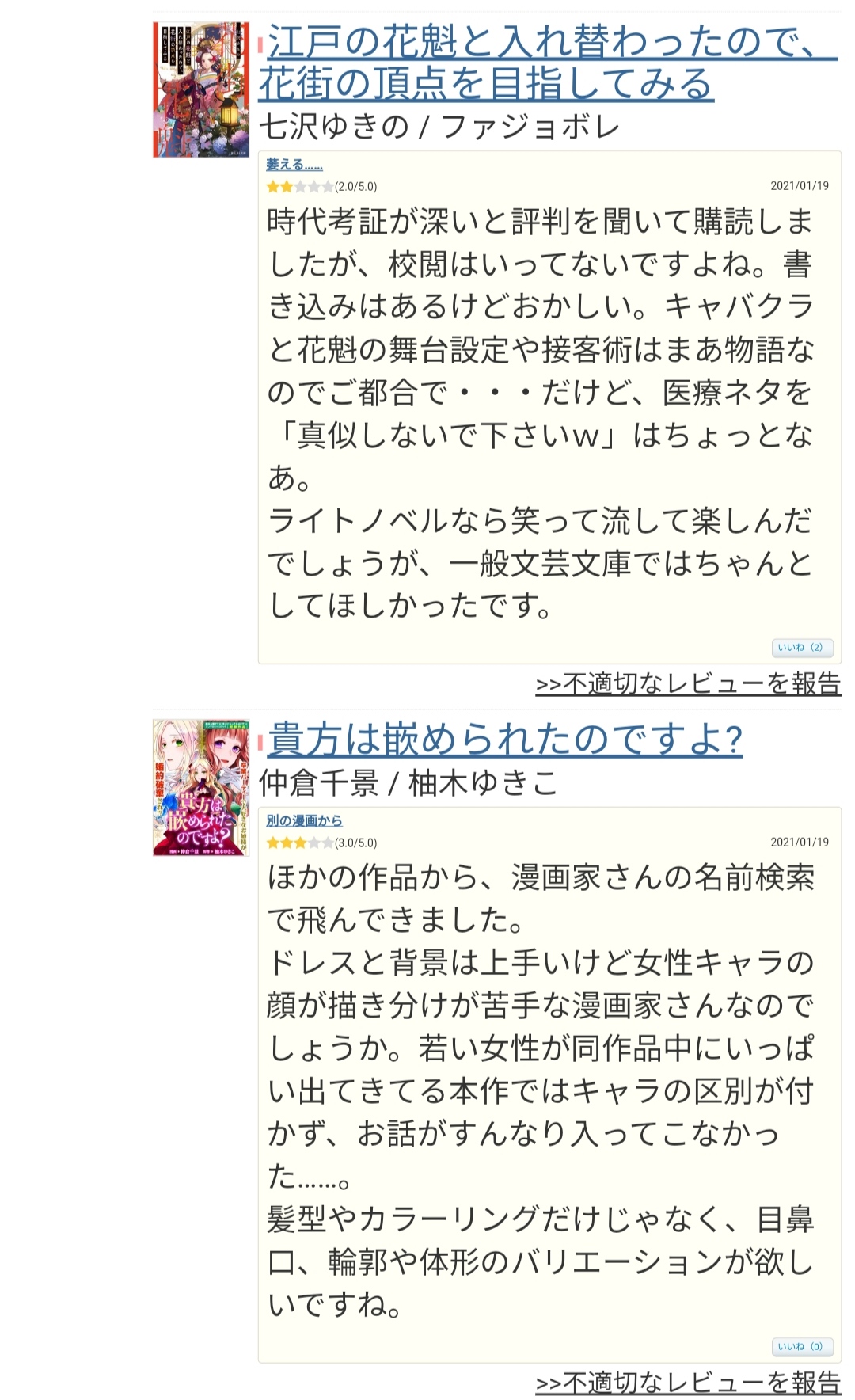自作担当漫画家、「仲倉千景」を貶めるレビューをしていたことが発覚