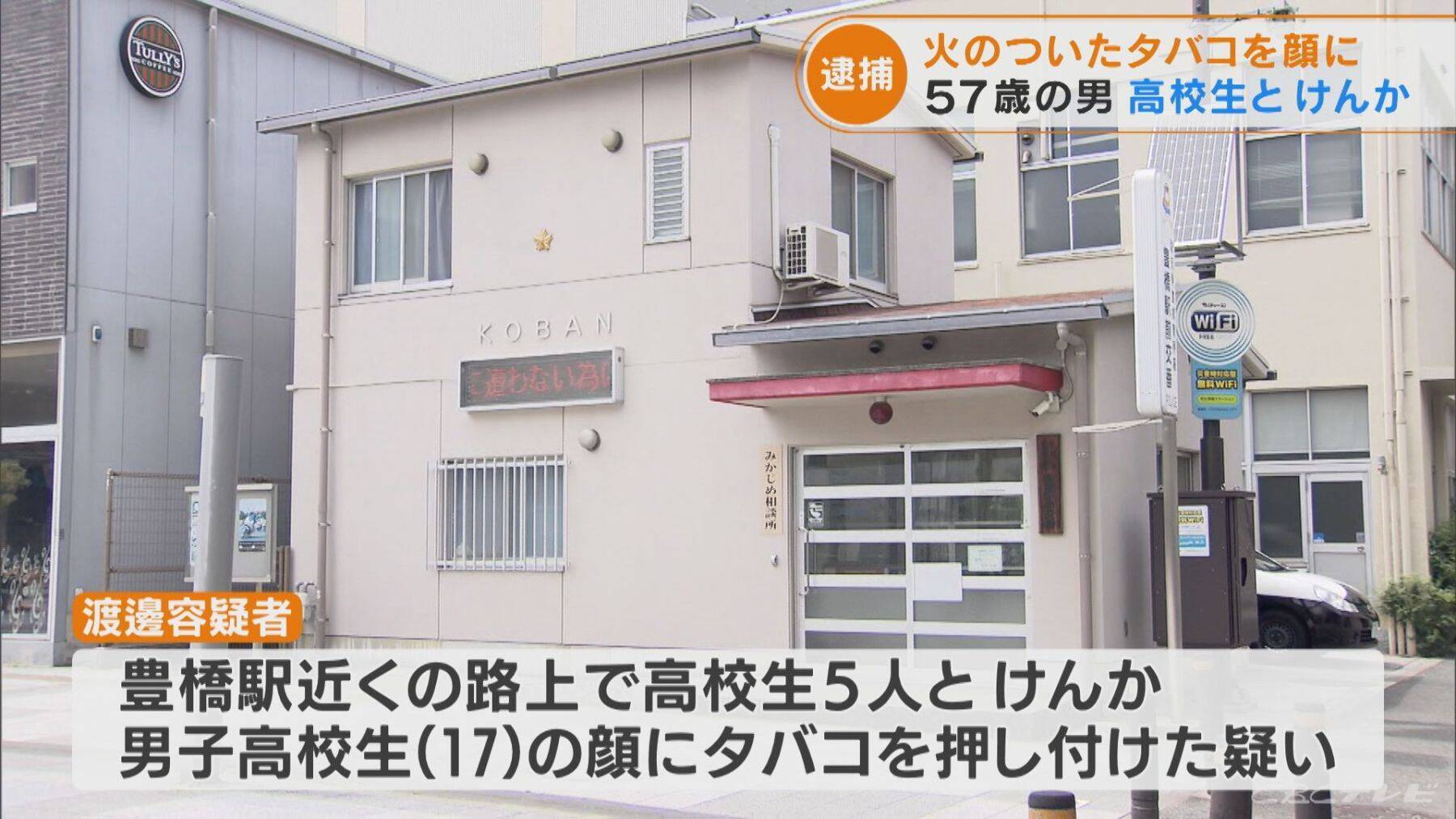 住居不定・無職の渡邊英慈容疑者は豊橋駅近くの路上で高校生5人とけんかになり、17歳の男子生徒の顔に火のついたタバコを押し付け、やけどをさせた傷害の疑いが持たれている