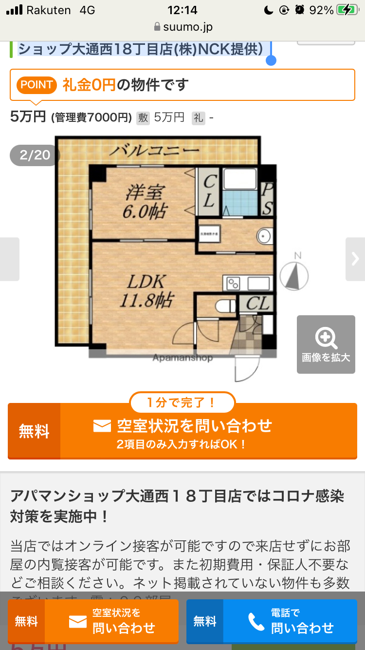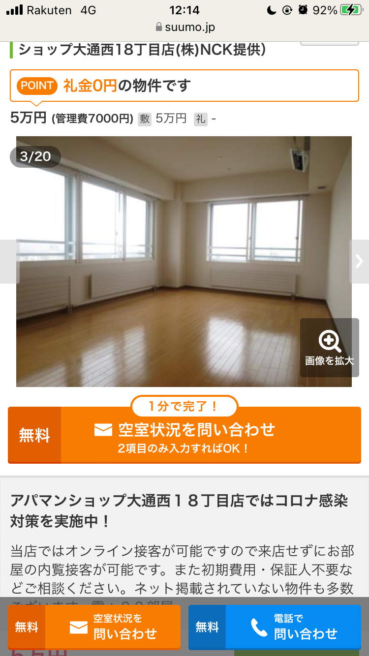 07m2)の賃貸住宅情報(アパマンショップ大通西18丁目店(株)NCK提供)
