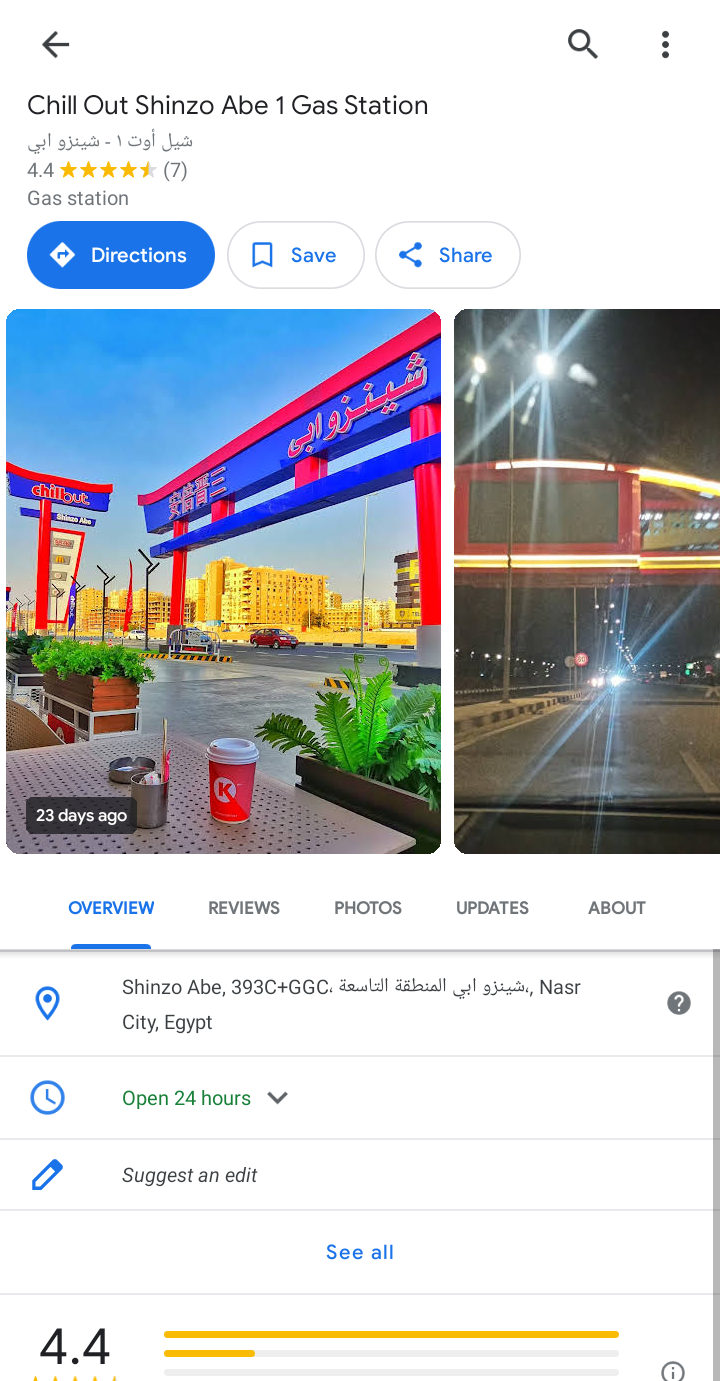 グーグルマップで「chill out Abe shinzo gas station」って調べると出てくる