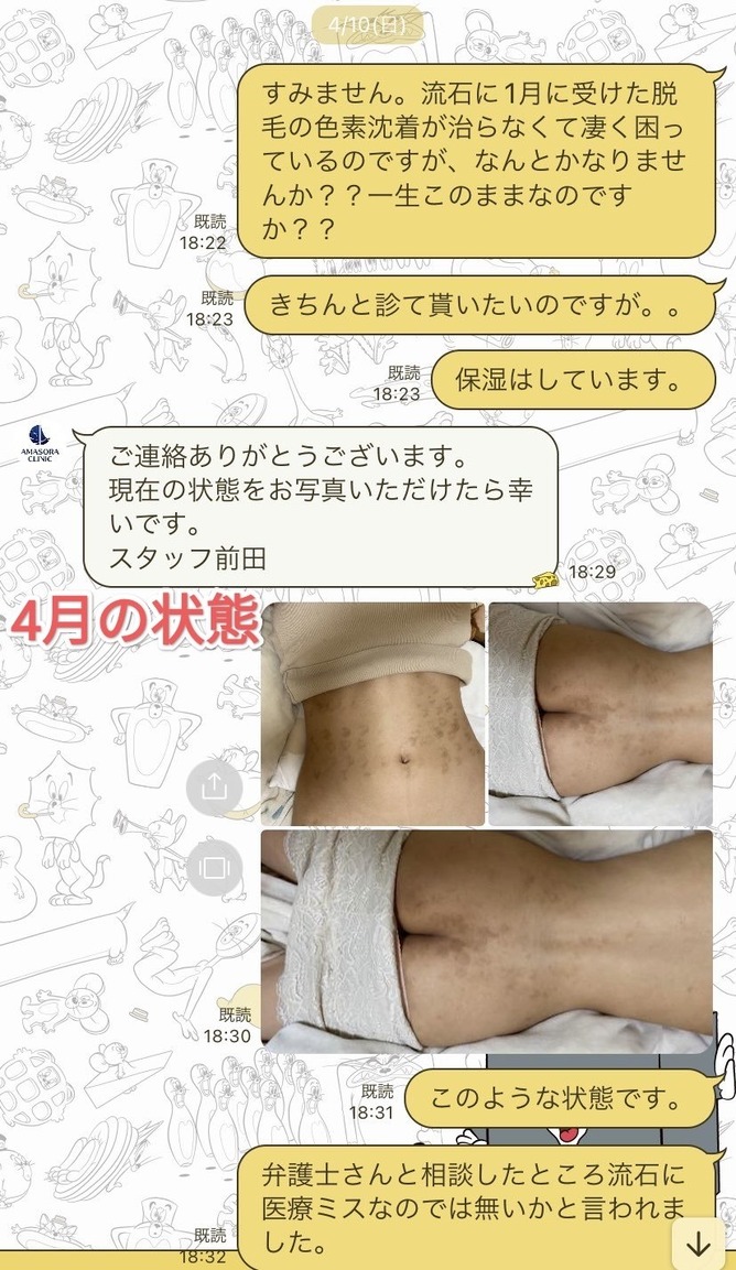 脱毛の後の火傷。アマソラクリニックは一切保証してくれないと弁護士から連絡が来ました。ドラゴン細井許せない。 pic.twitter.com/D6SzcLabww