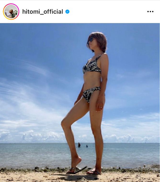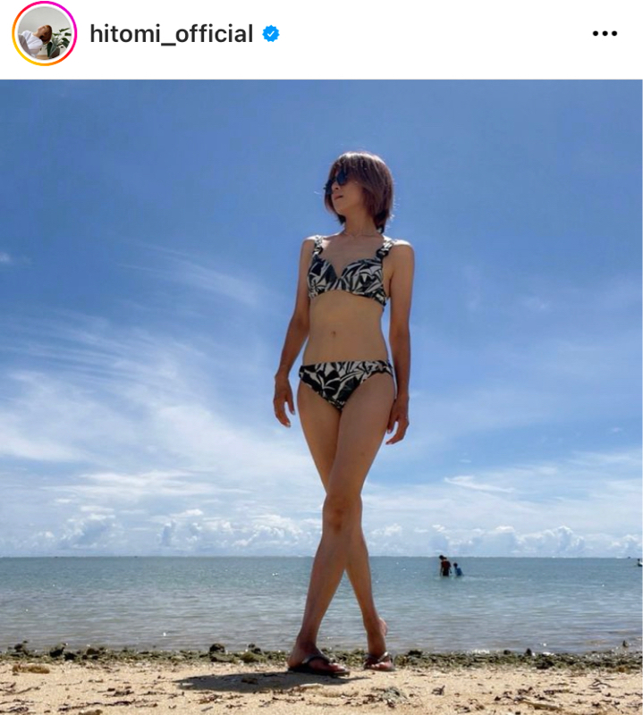 4児の母で歌手のhitomi(46)が10日、自身のインスタグラムを更新し、スラリとした生脚があらわになった水着姿を公開した。