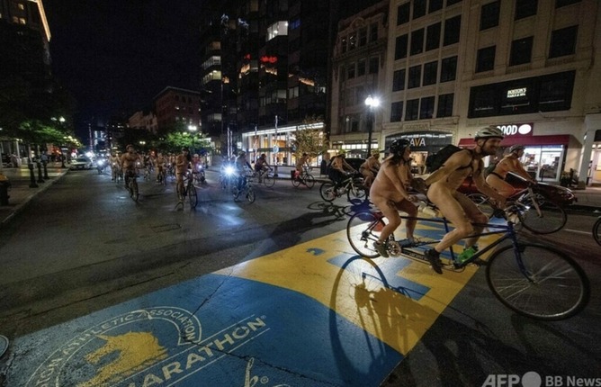 【8月14日 AFP】米マサチューセッツ州ボストン(Boston)で13日、裸で自転車に乗るイベント「ワールド・ネーキッド・バイク・ライド(World Naked Bike Ride)」が開催され、全裸もしくは全裸に近い人々が自転車で市内を駆け抜けた。