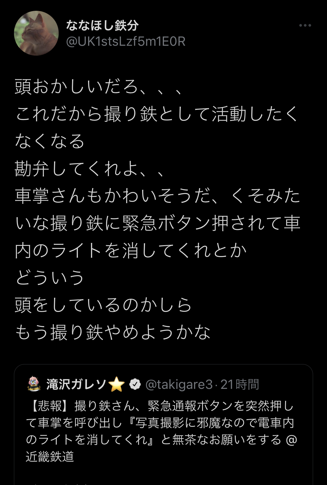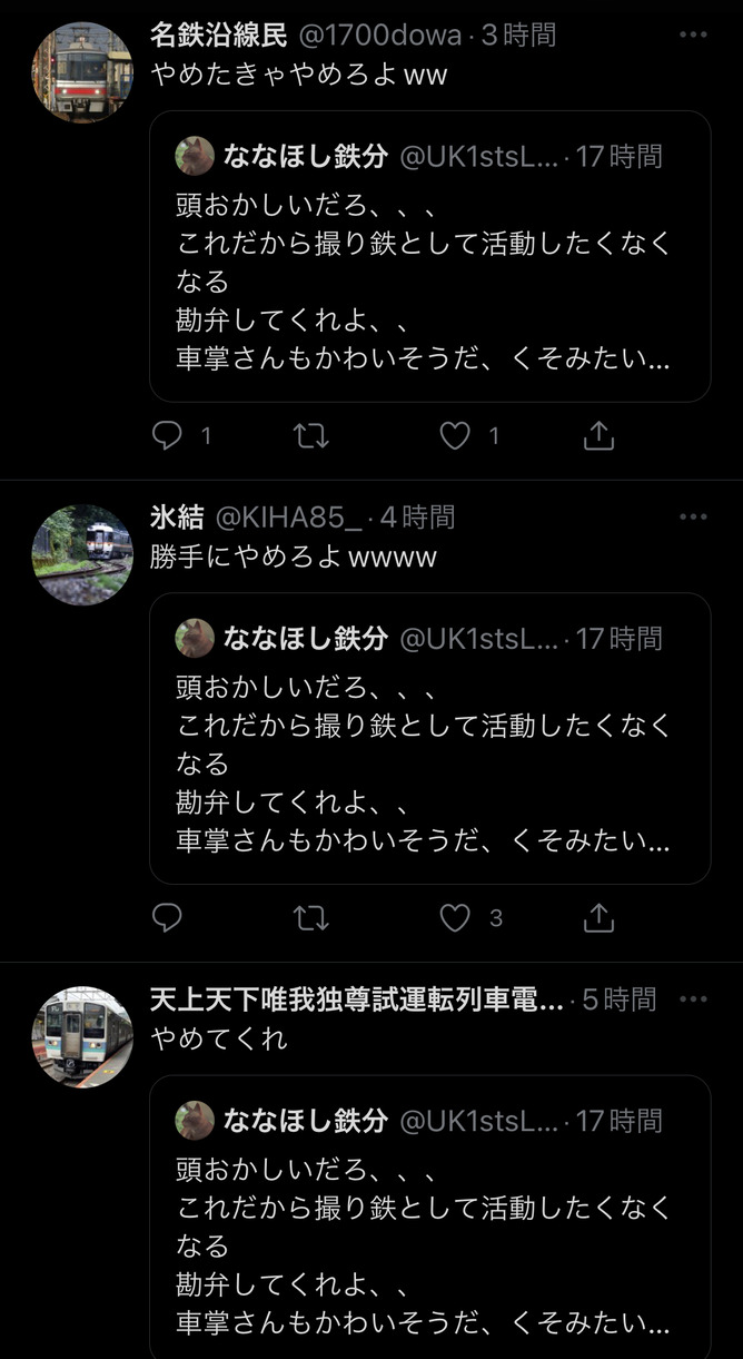 もう撮り鉄やめようかな https://t.co/1xDrkZ4xQu— ななほし鉄分 (@UK1stsLzf5m1E0R) August 15, 2022