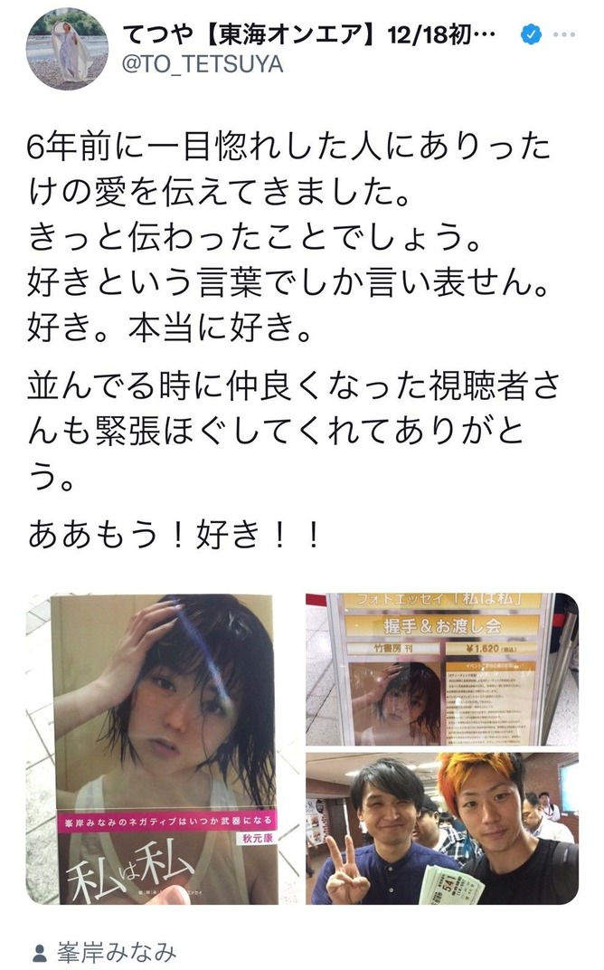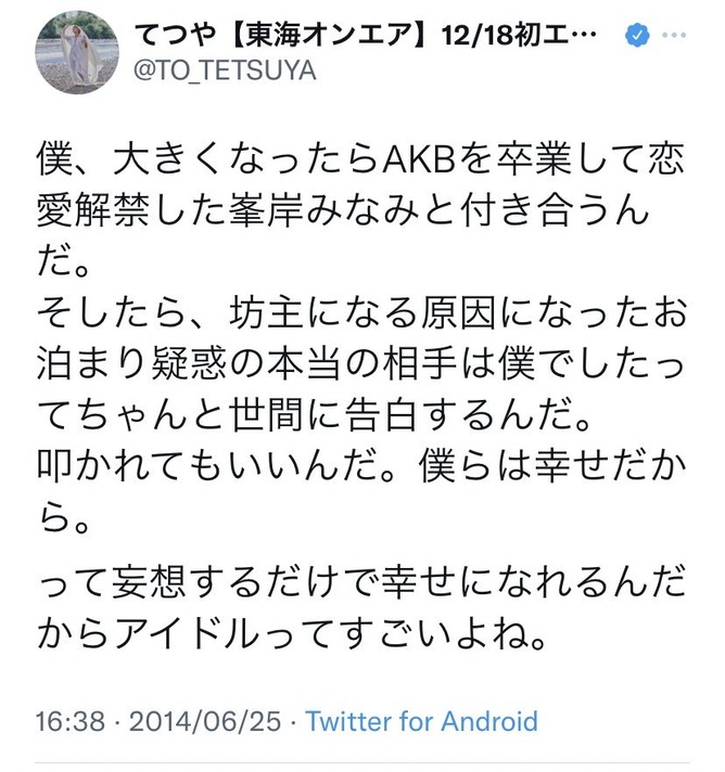 【画像】東海オンエアてつや(15歳)「大きくなったら僕、峯岸みなみと結婚するんだ」