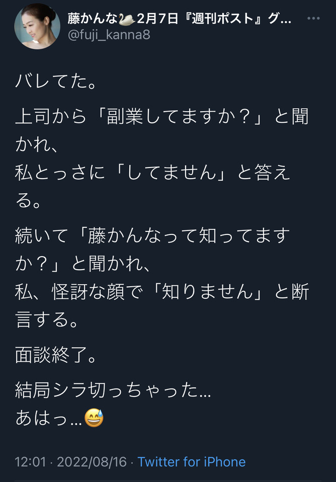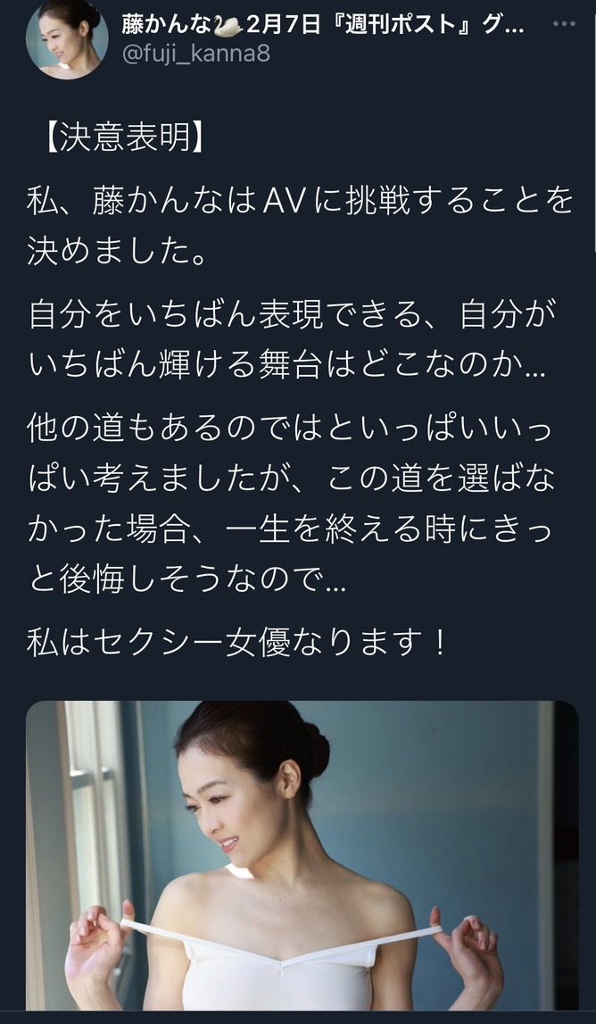 — 藤かんな🦢2月7日『週刊ポスト』グラビアデビュー (@fuji_kanna8) August 18, 2022