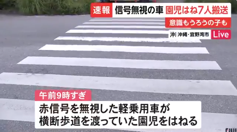 【速報】信号無視の車 園児はね7人搬送 沖縄・宜野湾市 #FNNプライムオンライン #沖縄テレビ https://t.co/bem8E7UF5A