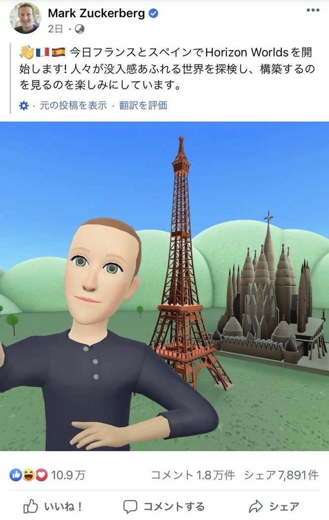 ザッカーバーグのFacebookより