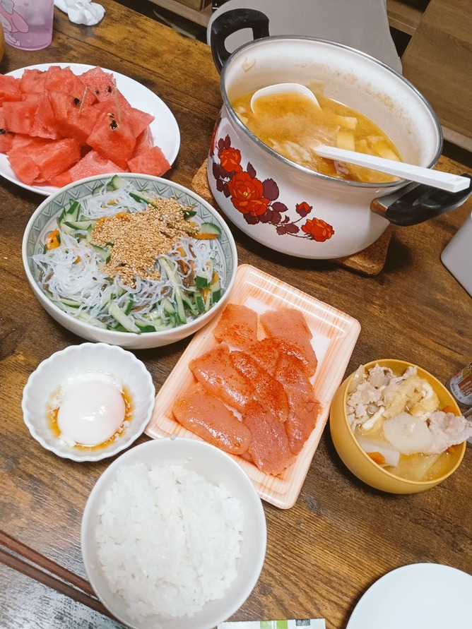 こちらが、息子に一瞥されて「いらん。」と言われた今日の夕飯です。残ってた長芋とか入れた具だくさん豚汁美味しかったのにな〜。 pic.twitter.com/wtoGl7TBoT