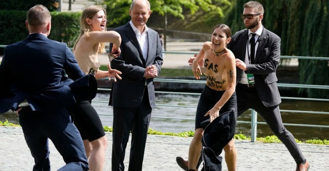 【画像】ドイツの女さん、お●ぱい丸出しでロシアからのガスを止めろと首相に抗議