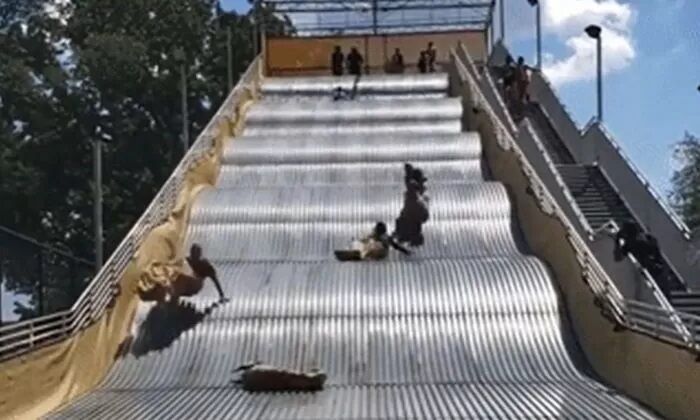しかし、滑り降りた人の多くは滑り台に叩き付けられるという想定外のことが起きてしまった。そう運営している