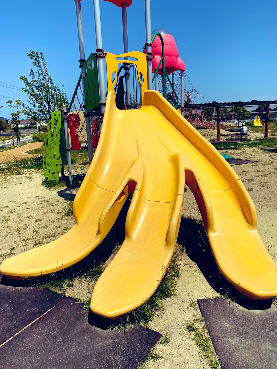 もりやまエコパーク(滋賀県守山市)の「遊びの広場」に設置されているバナナの形を模した滑り台を巡り、危険性を訴える声が上がっている。中盤に3方向に分かれる分岐があり、ぶつかって股間を強打したり頭から地面に落下したりする恐れがあるといい、3年前には岩手県の同じ滑り台で事故も起きた。専門家は「行政はもっと注意喚起すべき。事故が起き得る環境を放置してはいけない」と指摘する。