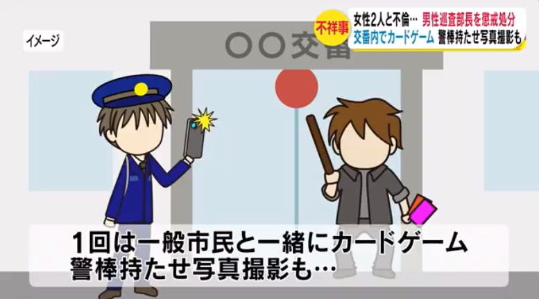交番でカードゲーム、二人の女性と不倫、一般人に警棒持たせ記念撮影 巡査部長を処分
