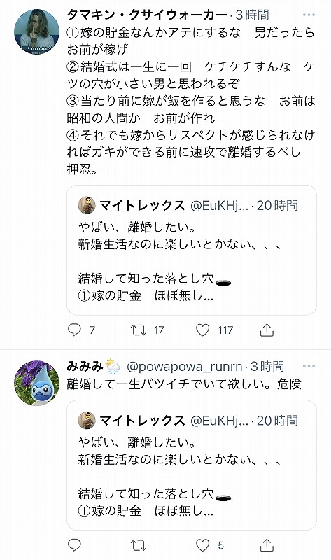 ③2ヶ月過ごして嫁ご飯作ったの2回— マイトレックス (@EuKHjzmKVhSz2ta) August 27, 2022