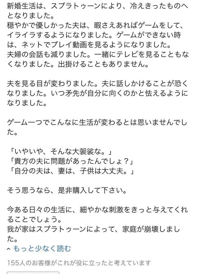 嫁とでかけるよりスプラトゥーンのほうが楽しいならしゃーないやろ
